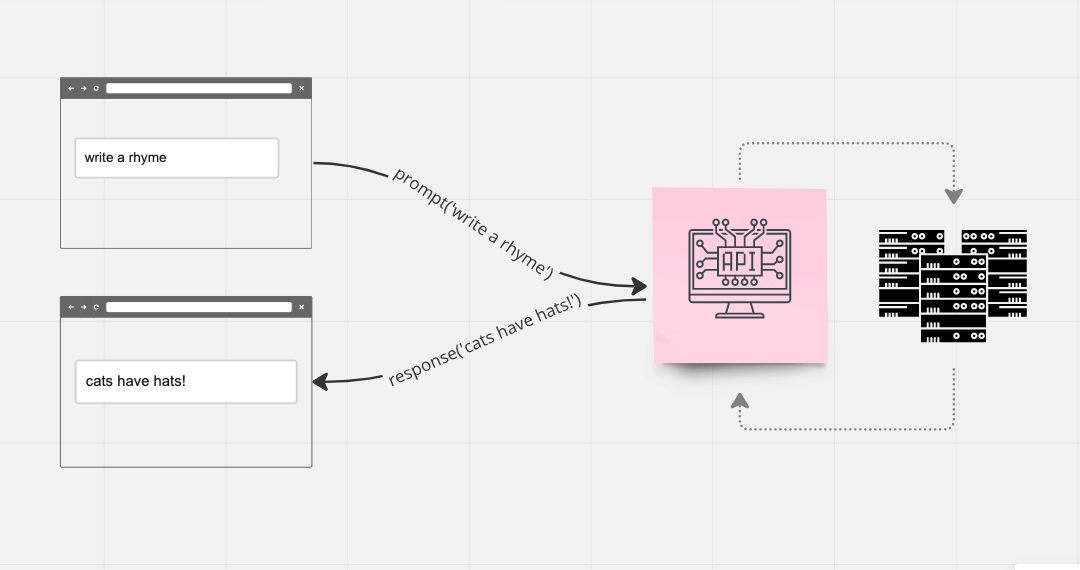 Looking at ChatGPT as an example, let's remember it's a web application like any other. For example, I used ChatGPT to illustrate what is an API. ChatGPT uses a client application that runs in your browser. This is the text box in which you write your prompts. This is the "frontend", as I explained in What is the difference between frontend and backend development. The backend is the servers that power ChatGPT. They are separated into the internal services needed to train the algorithms and the public-facing ones that deliver the responses to the prompts. They are hosted in Microsoft's data centers all across the world.